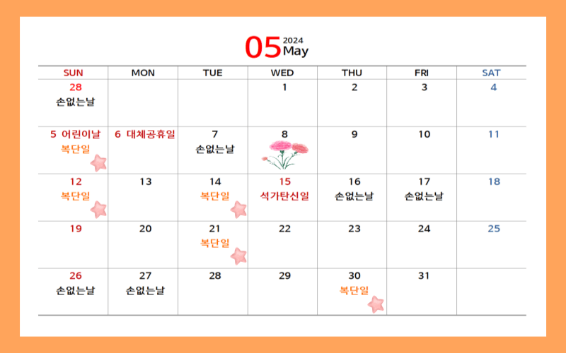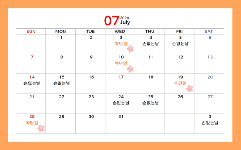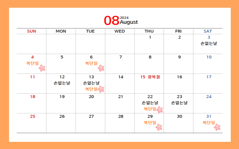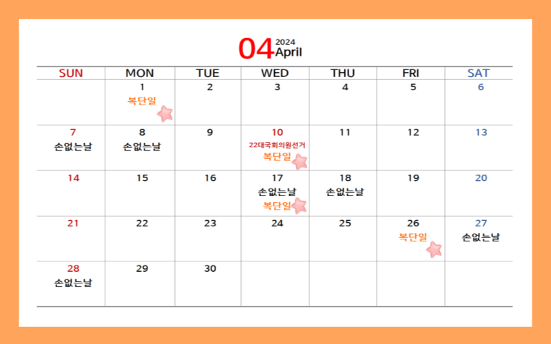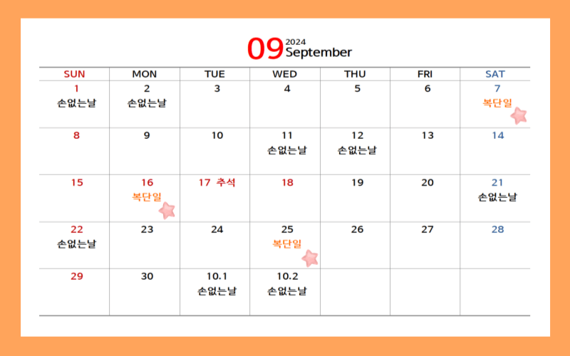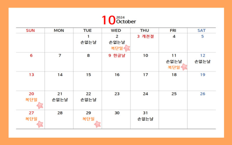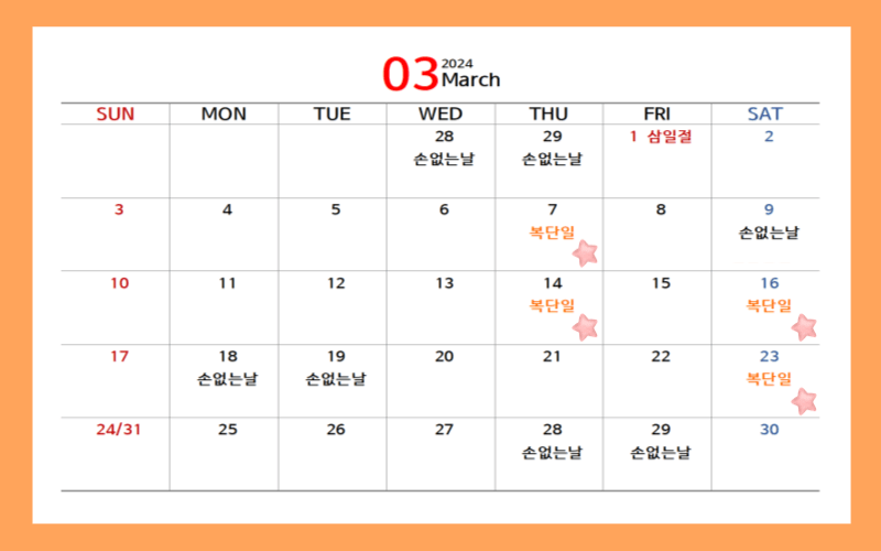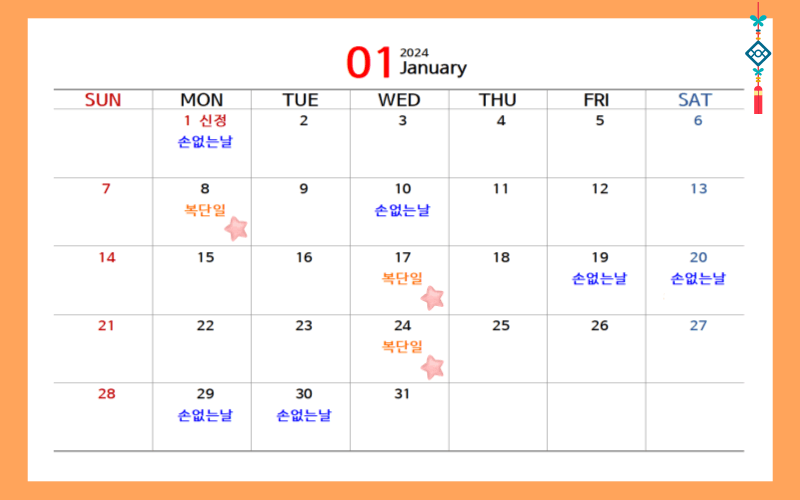 2024년 복단일과 손없는 날 택일하기