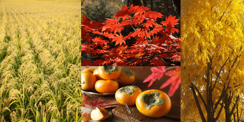 가을 벼, 감, 단풍, 은행나무