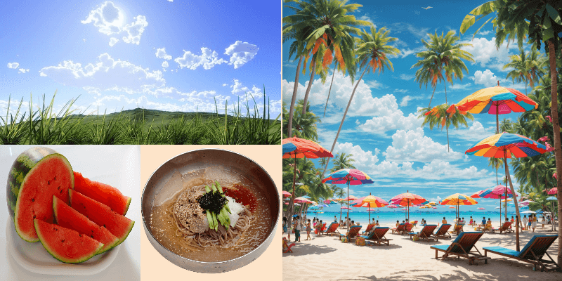 6. 대서(양력 7월 22일 or 23일) : 더위가 가장 극심한 시기로 삼복더위를 피해 물놀이를 하거나 보양식을 먹기도 한다.
