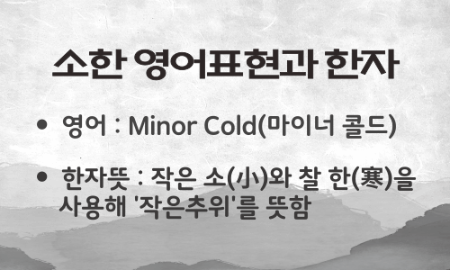 2. 한자뜻 : 작은 소와 찰한을 사용합니다. 작은 추위를 뜻합니다.